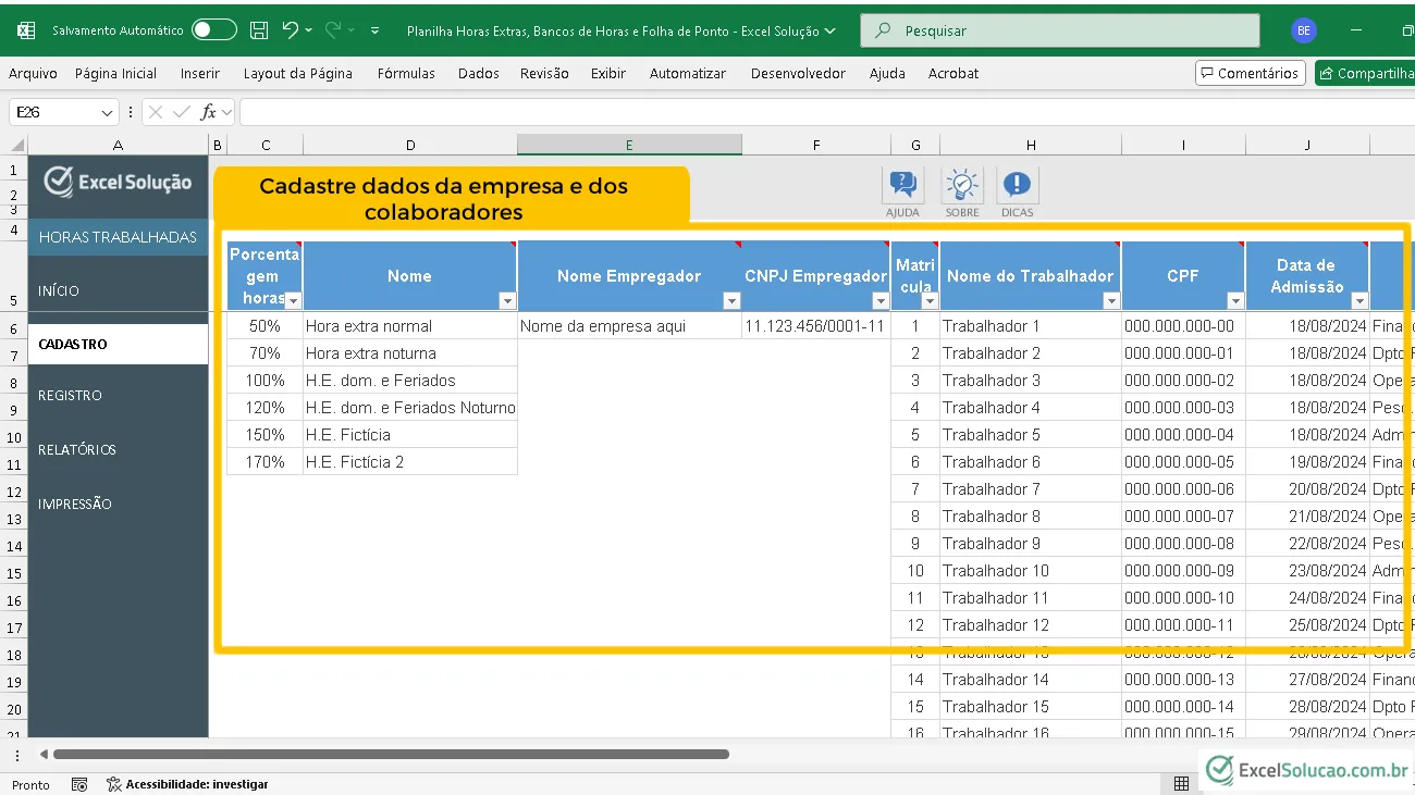 Não tenha mais dúvidas sobre como calcular os valores das horas extras. Apenas registre a jornada de trabalho de seus colaboradores e deixe que a planilha poupe o tempo e trabalho do seu departamento pessoal.