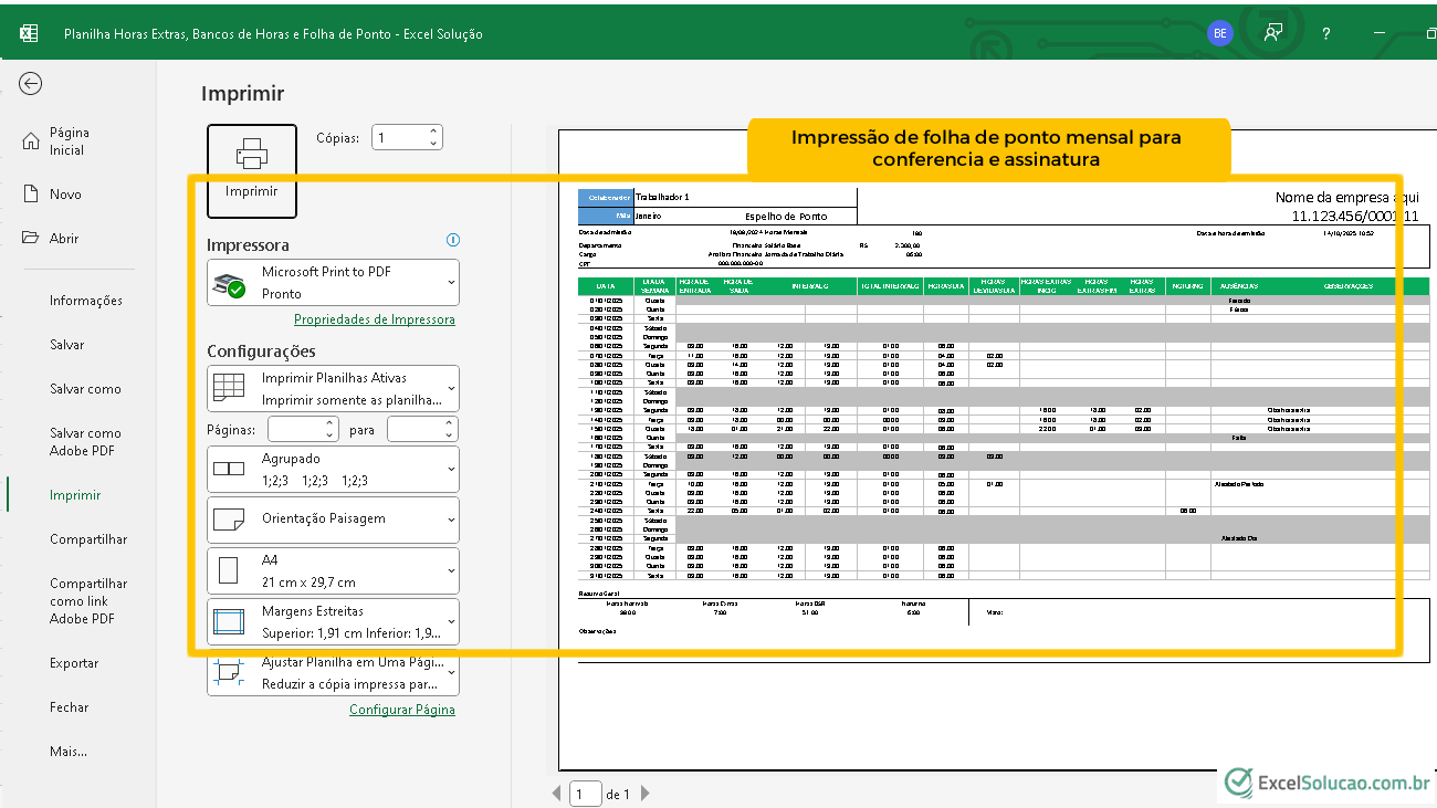 Todas essas informações estão organizadas e disponíveis para impressão em dois modelos: um preenchido a partir das informações de entrada e saída registradas na planilha e outro em branco, para preenchimento manual.