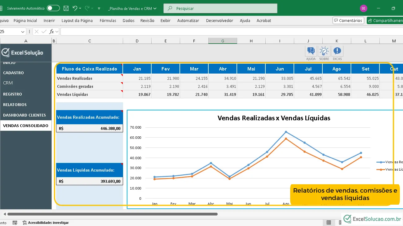 Implementando na sua empresa o sistema adequado, você mantém a organização ao mesmo tempo que gera informações estratégicas para a sua gestão. Esta planilha de controle de comissões, vendas e CRM em excel permite que você acompanhe todas as transações em detalhes e monitore os resultados com gráficos e indicadores.