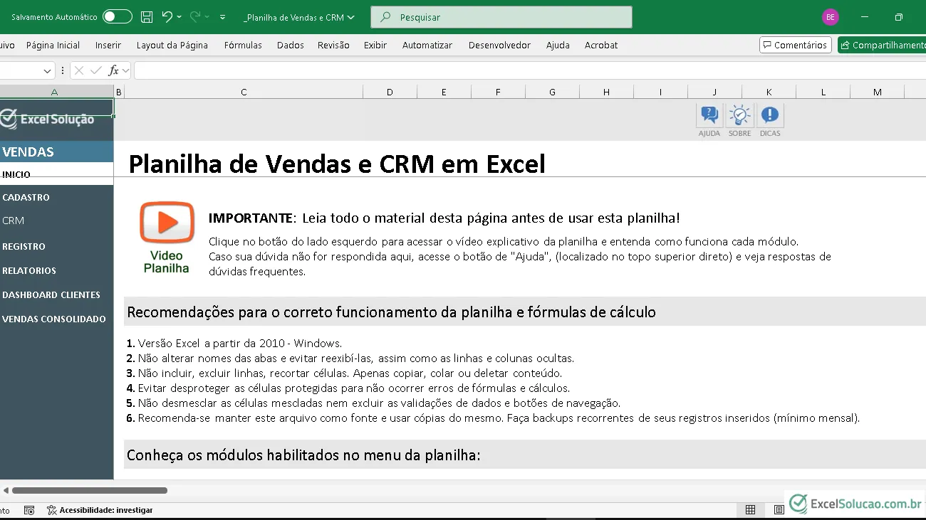 Atenção: Algumas das nossas planilhas possuem licenças e, nessas versões com licença você só pode utilizar as planilhas em até 3 computadores.